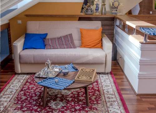 А знаете, как дизайнер добавил комнате уюта? Конечно, добавил в комнату удобный, стильный и практичный диван «НОРД» мебельной фабрики ЛАДЬЯ, который очень гармонично вписался в интерьер помещения. Уютный и компактный диван-кровать НОРД одним движением трансформируется в удобную двуспальную кровать. В качестве обивки дизайнер выбрал плотный износостойкий жаккард нейтрального бежевого цвета, подлокотники из кожзама также бежевого цвета. В результате Получилась очень уютная комната для отдыха в восточном стиле.
