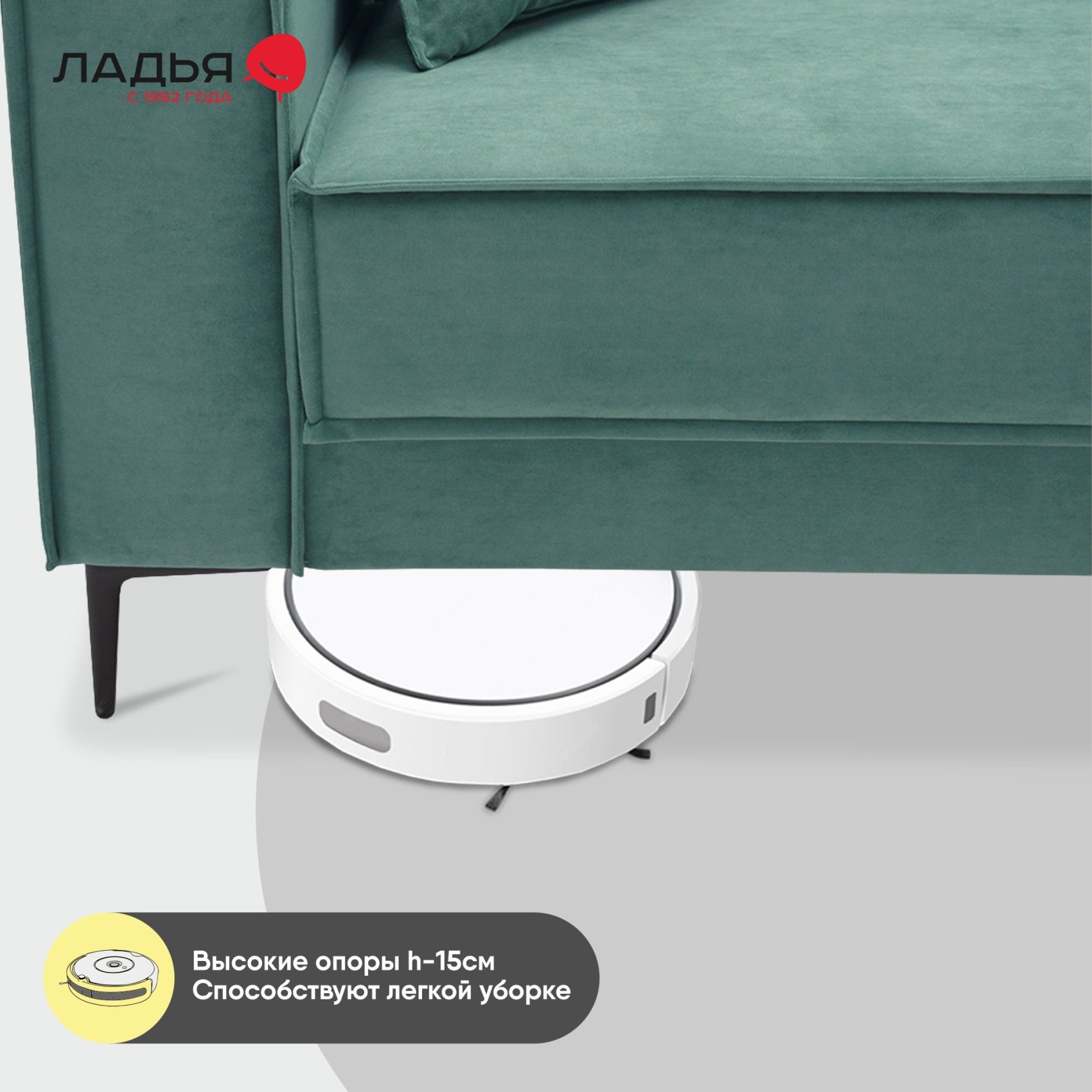 Высокие металлические опоры высотой 15 см придают дивану легкость и шарм в сочетании с комфортом. Благодаря высоким опорам Вы с легкостью сможете провести уборку.
