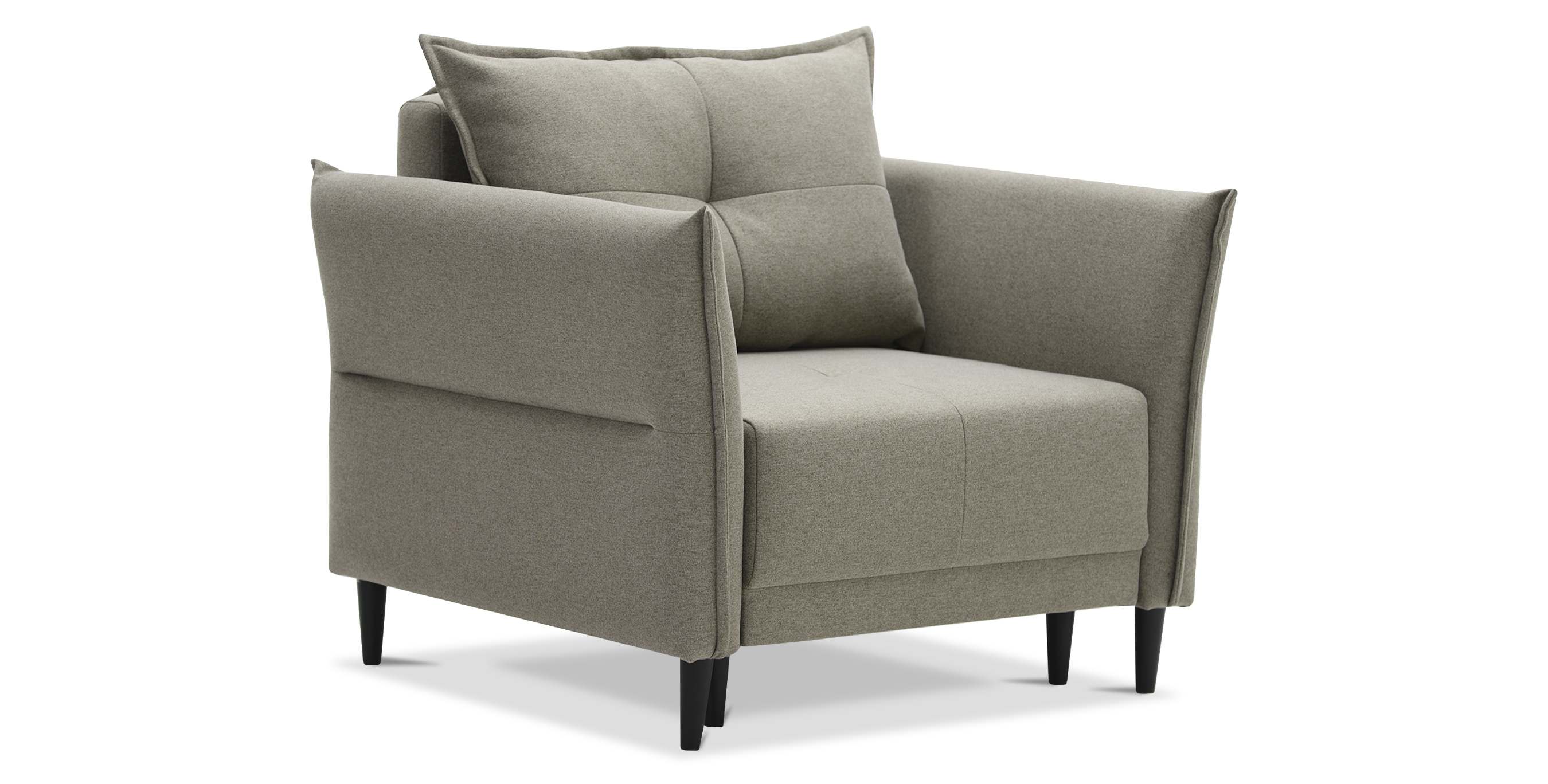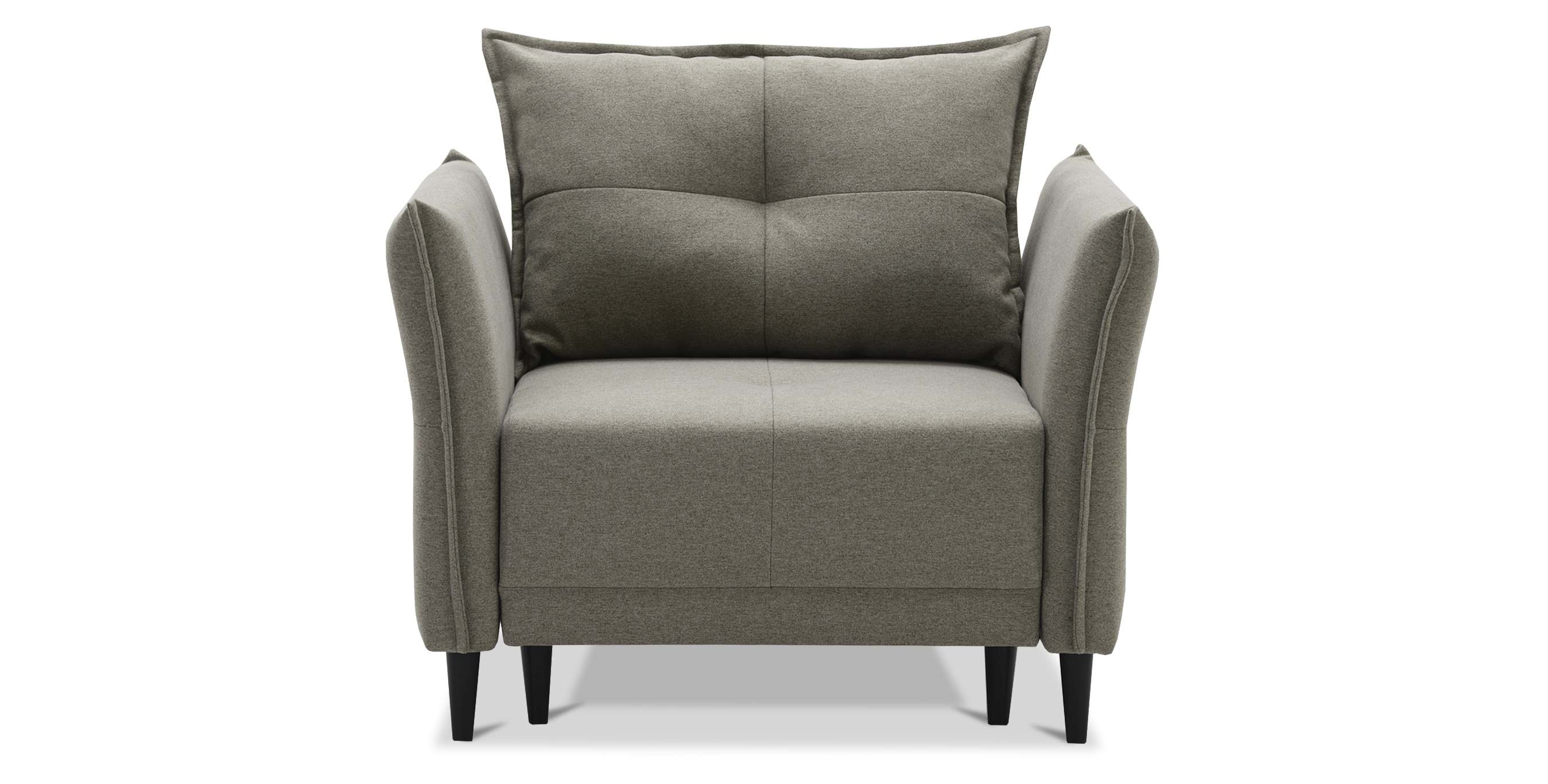 Стильный сканди-дизайн: квадратная стежка на приспинных подушках и сидении, стильная форма подлокотников с декоративными швами наружу, высокие деревянные опоры.