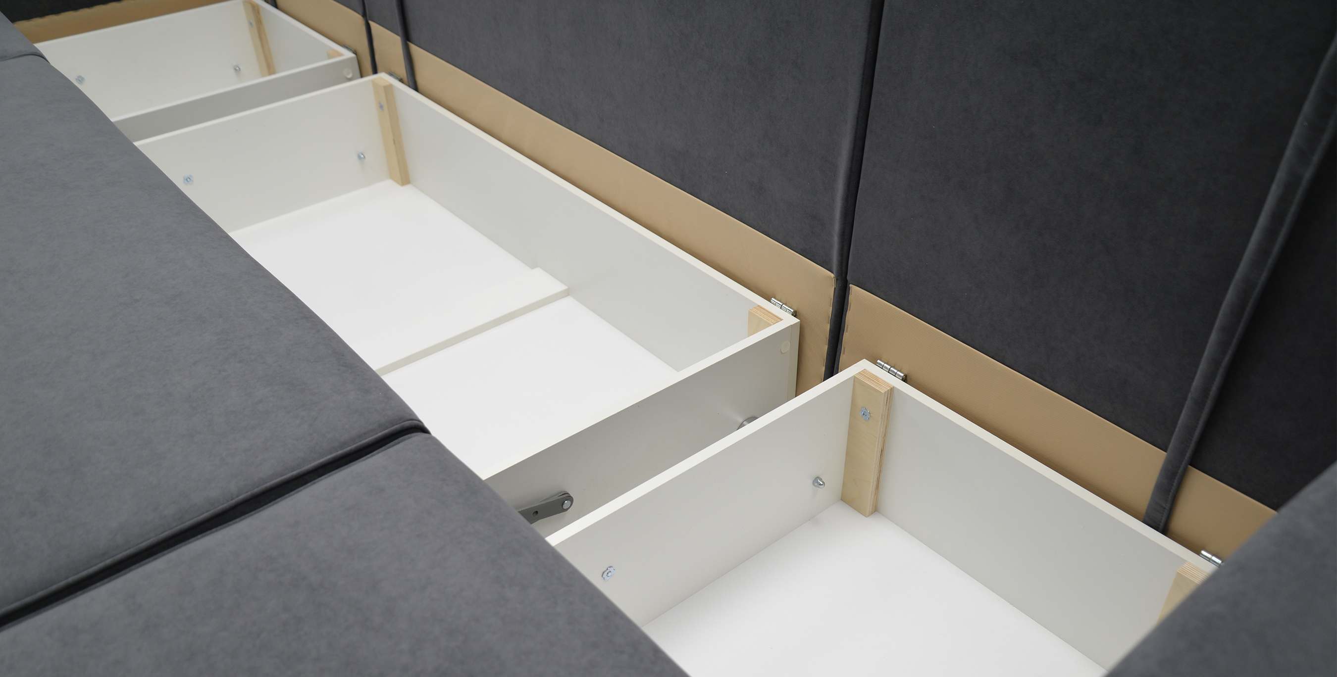 - Модель имеет 3 ящика, по 1 ящику в каждом из частей основания.