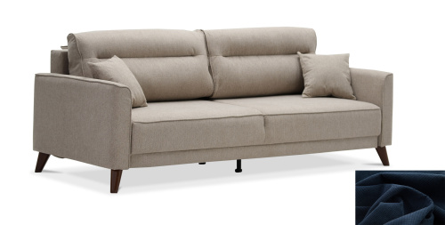 - Диван декорирован опорами из пластика с покрытием под текстуру древесины (орех) высотой 14 см. Высокие опоры визуально облегчают конструкцию дивана и открывают доступ к уборке пространства под ним.