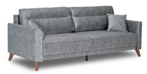 - Диван декорирован опорами из пластика с покрытием под текстуру древесины (орех) высотой 14 см. Высокие опоры визуально облегчают конструкцию дивана и открывают доступ к уборке пространства под ним.