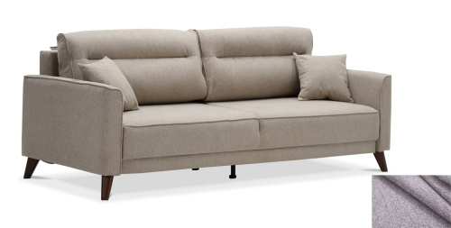 - Диван декорирован опорами из пластика с покрытием под текстуру древесины (орех) высотой 14 см. Высокие опоры визуально облегчают конструкцию дивана и открывают доступ к уборке пространства под ним.