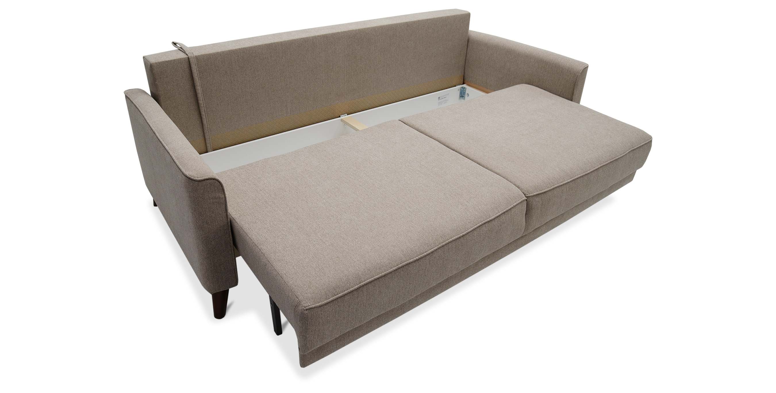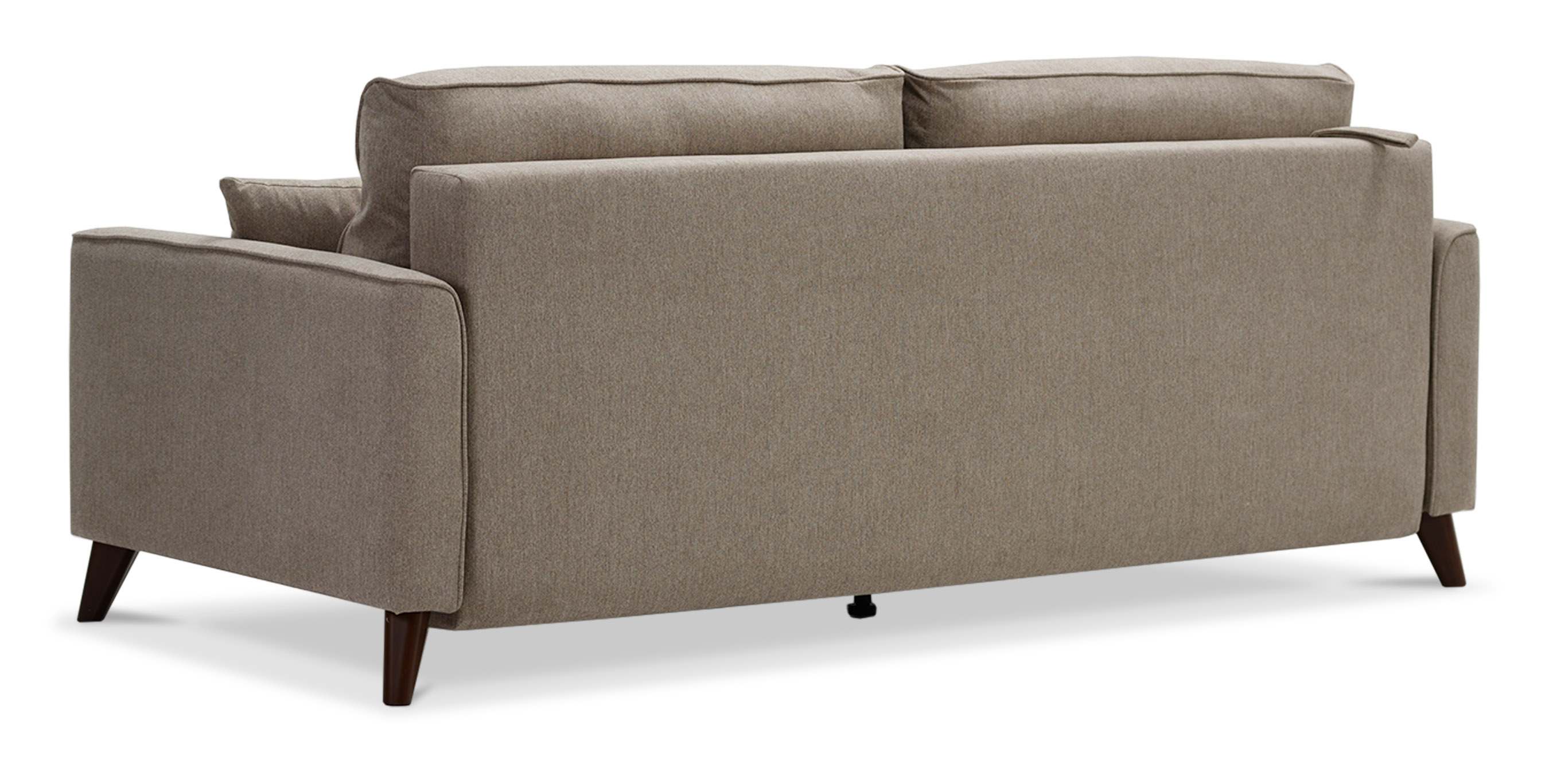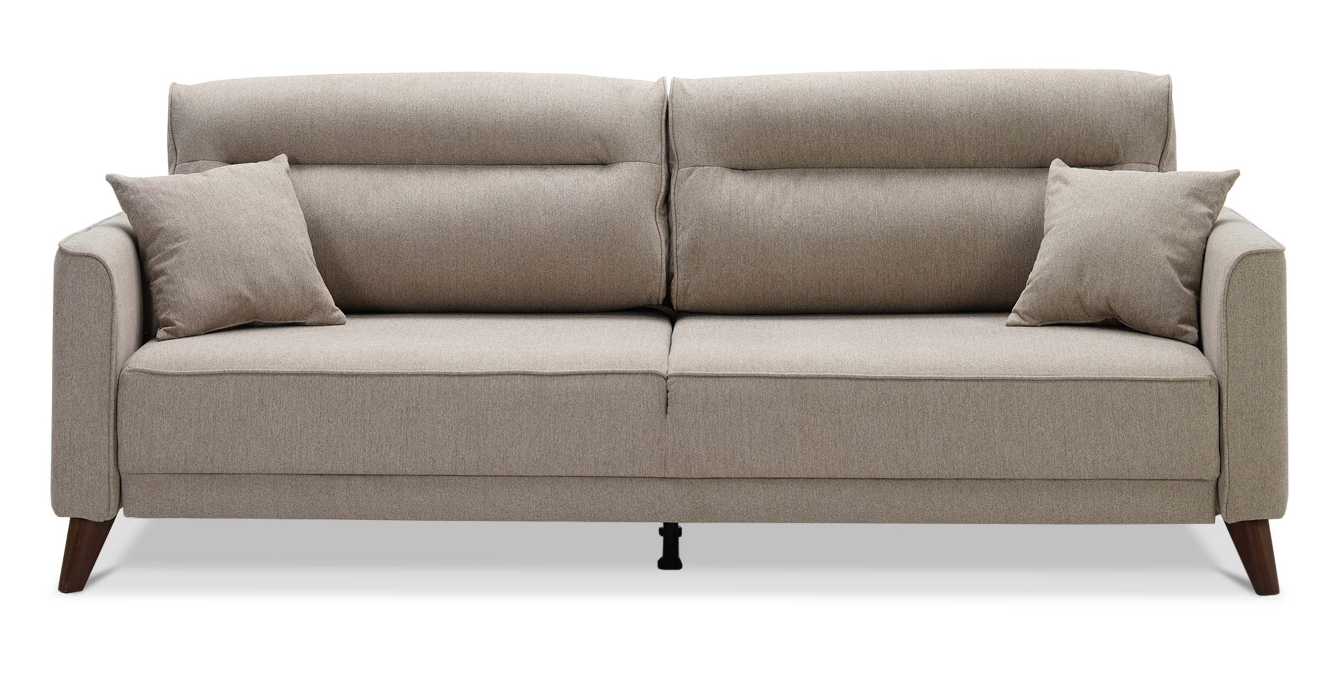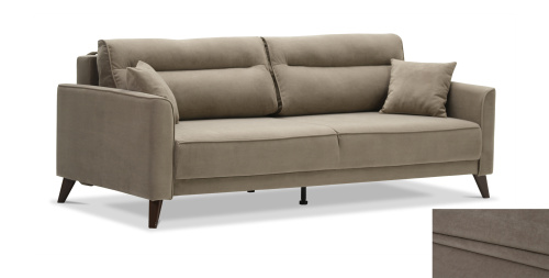 - Диван декорирован опорами из пластика с покрытием под текстуру древесины (орех) высотой 14 см. Высокие опоры визуально облегчают конструкцию дивана и открывают доступ к уборке пространства под ним.