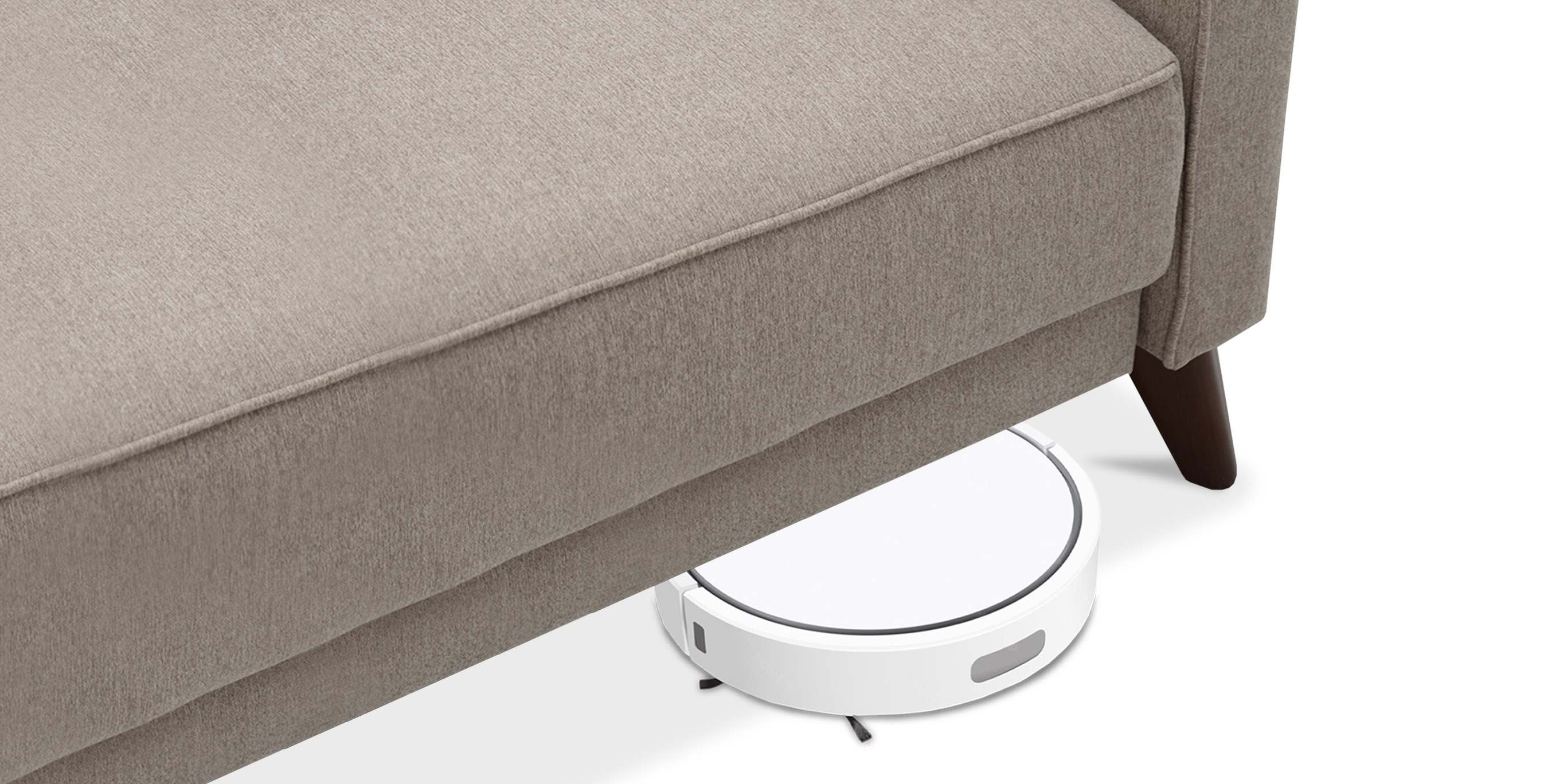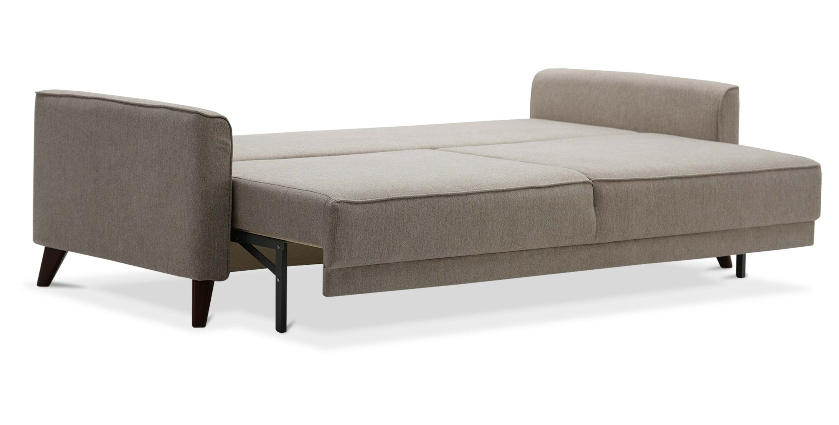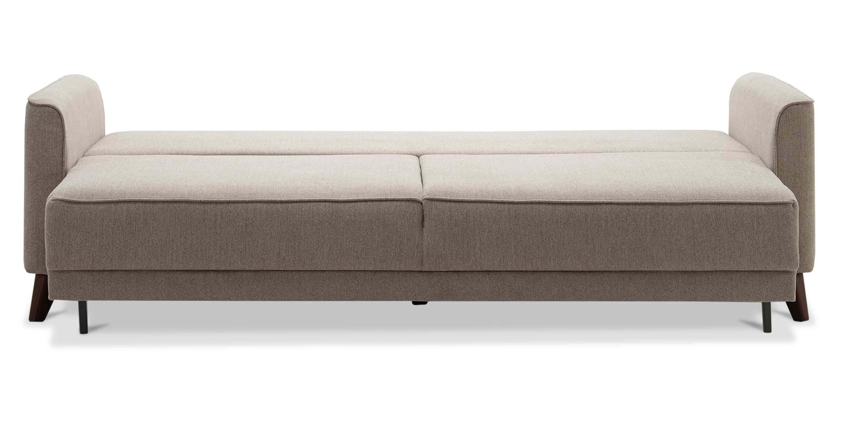 - Диван декорирован опорами из пластика с покрытием под текстуру древесины (орех) высотой 14 см. Высокие опоры визуально облегчают конструкцию дивана и открывают доступ к уборке пространства под ним.