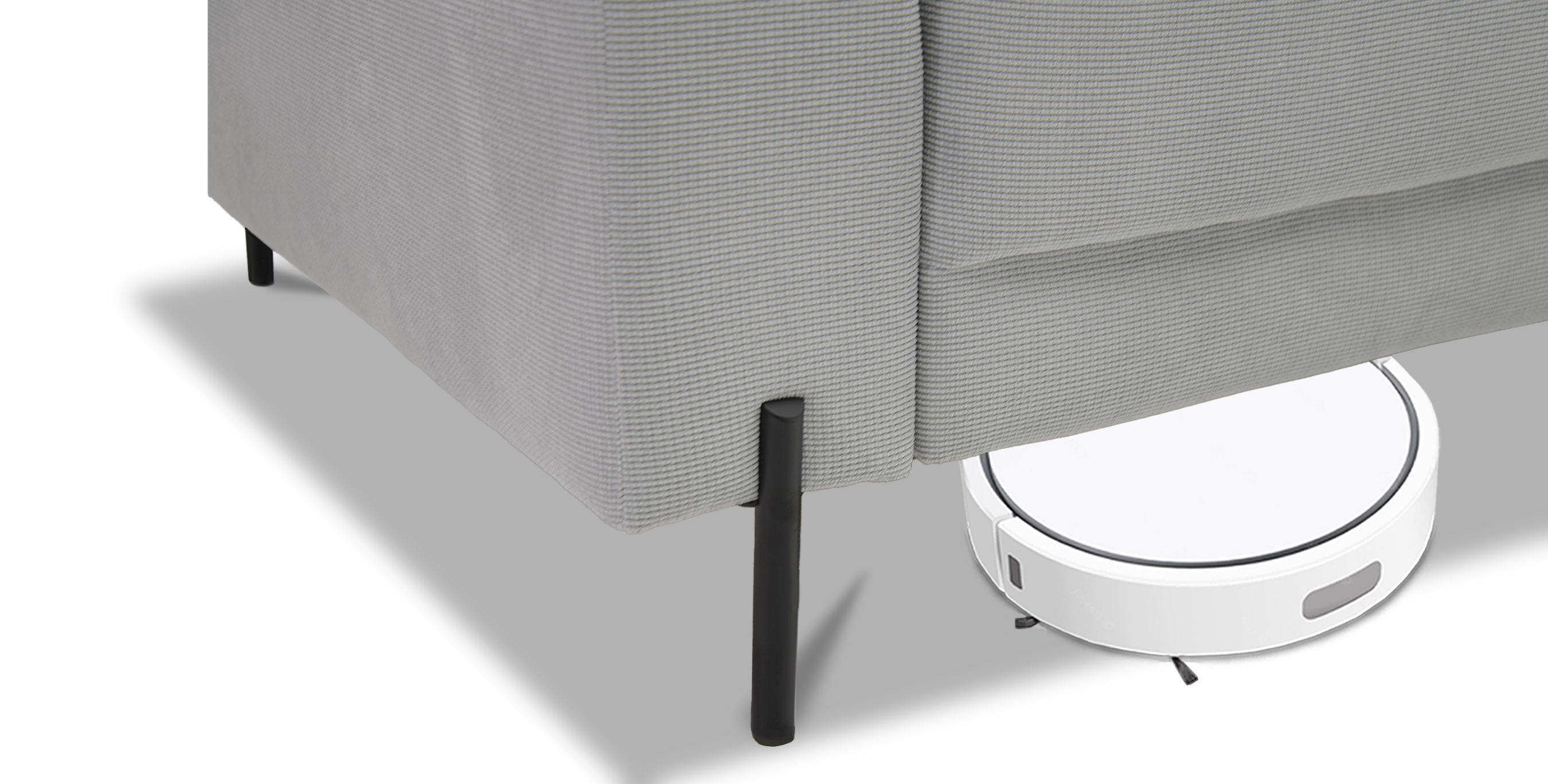 Диван оснащен высокими надежными металлическими опорами. Под диваном удобно совершать уборку.