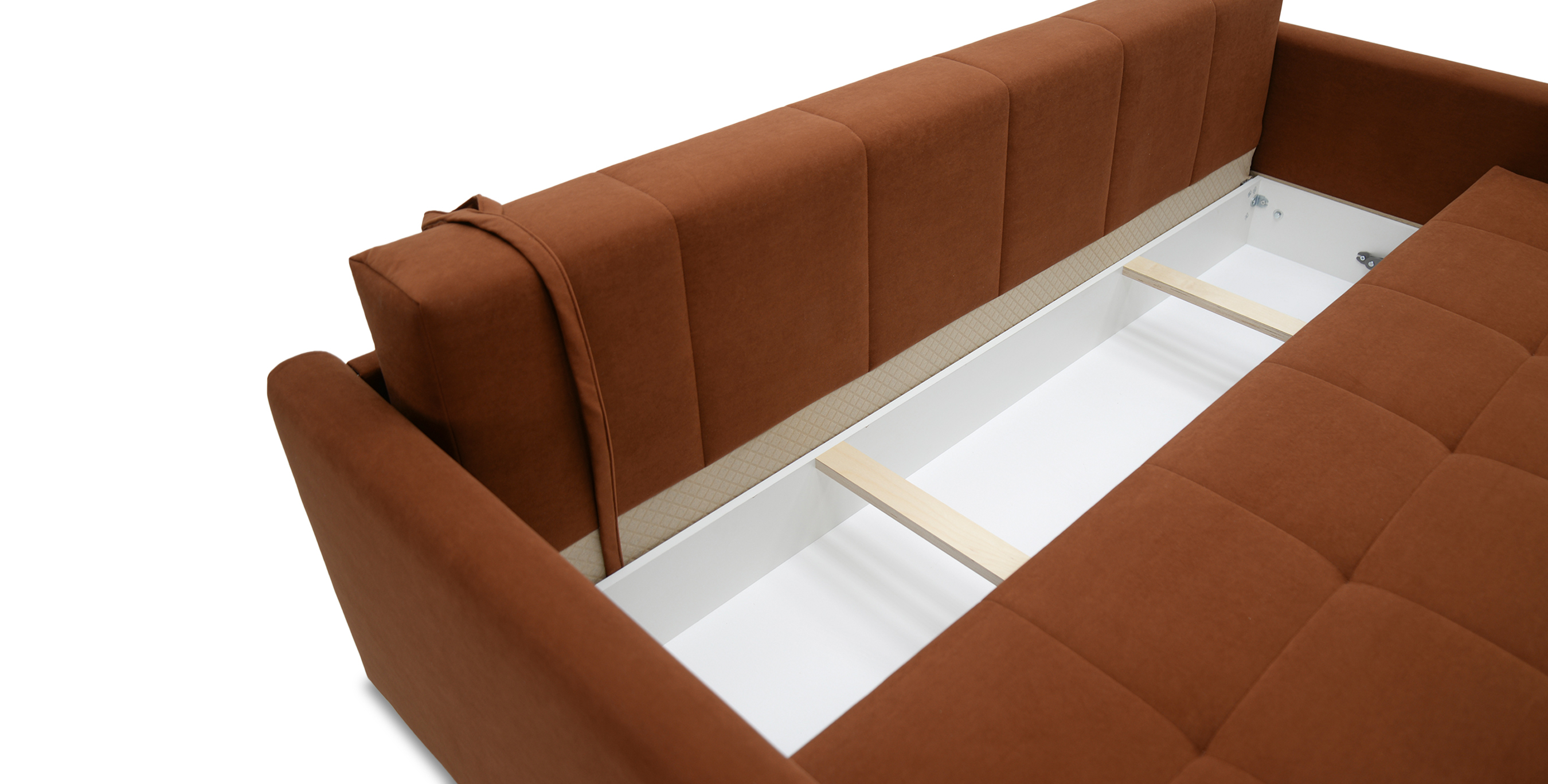 Диван оснащен вместительным ящиком для хранения постельных принадлежностей.