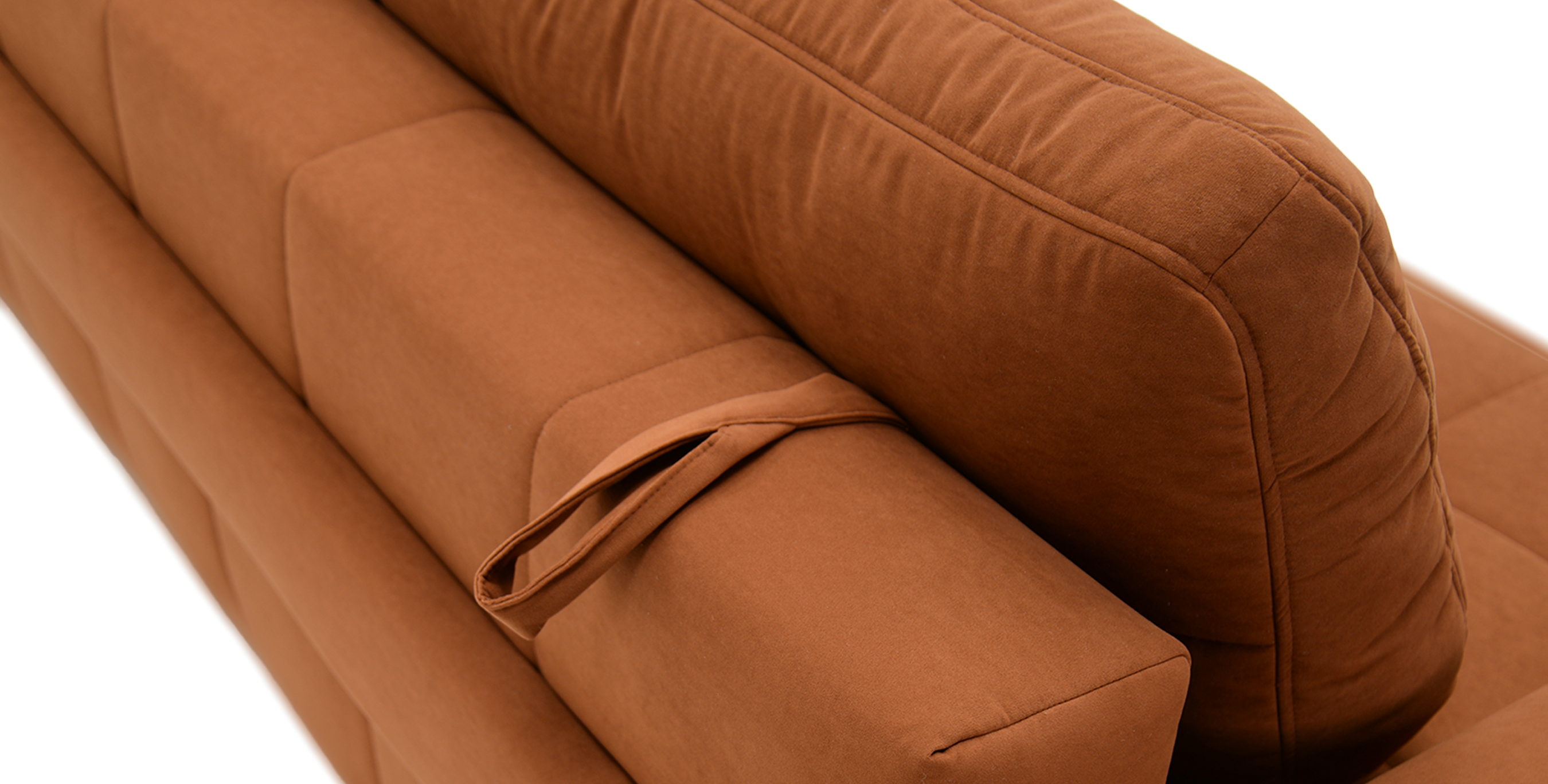 Красивый рельеф чехлов достигается за счёт применения специальных утяжек. Наполнителем приспинных подушек является смесь (синтепух/крошка ППУ). Поддержка спины и комфортная посадка. Чехол из современной мебельной ткани на синтетическом наполнителе выполнен по стегальной технологии. Пышность форм дивана, за счет стеганого чехла, обеспечивает его более продолжительный срок службы!