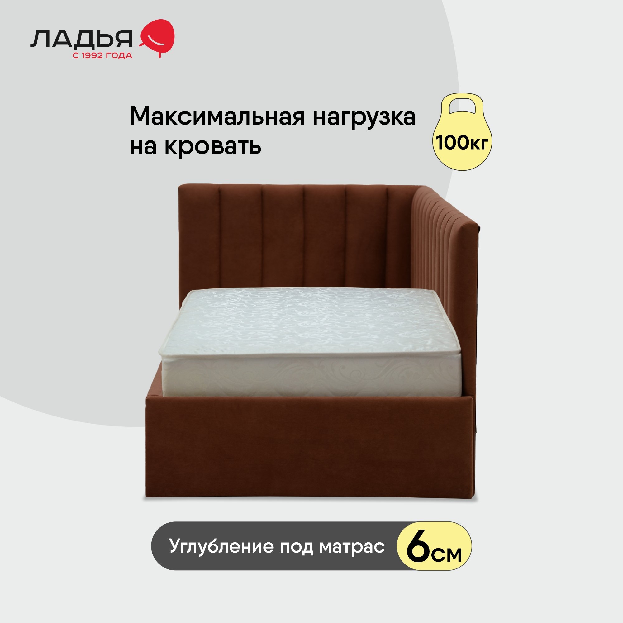 Максимальная распределенная нагрузка на одно спальное место -100 кг. Рекомендуемая высота матраса до 30 см