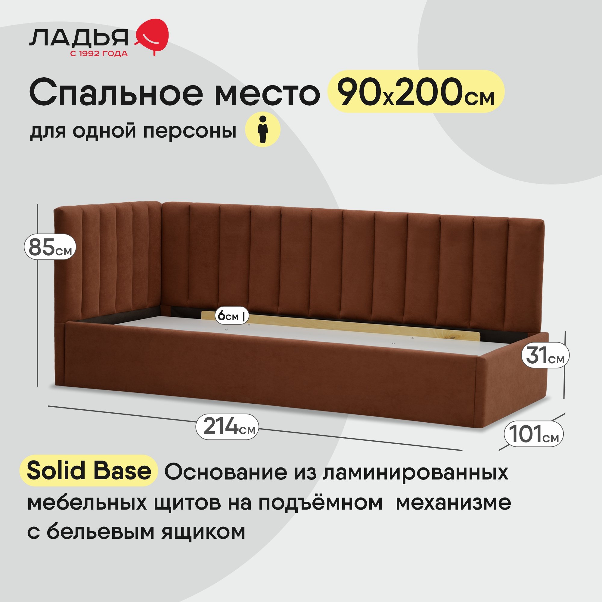Основание из ламинированного мебельного щита. Углубление под матрас – 6 см