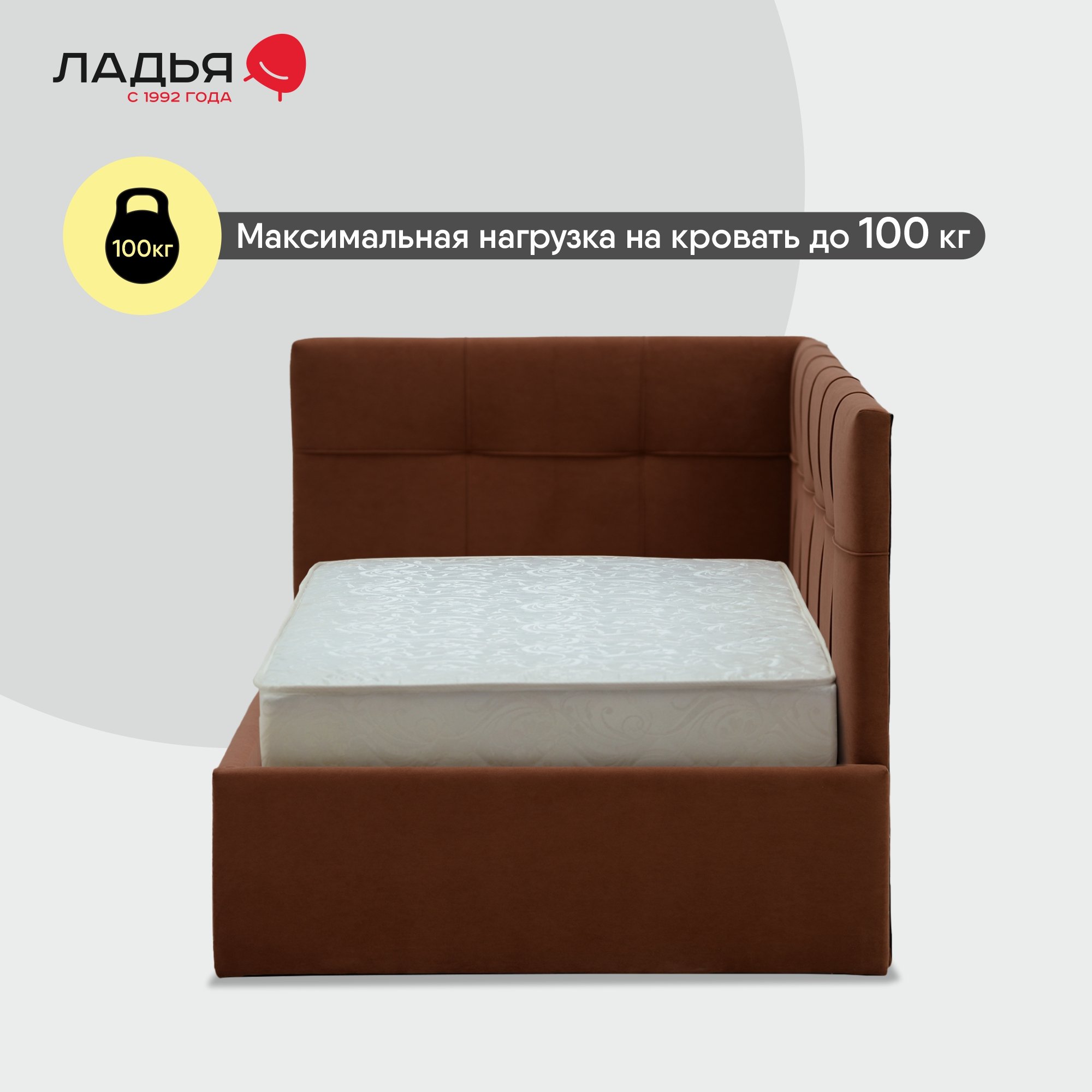 Максимальная распределенная нагрузка на одно спальное место -100 кг. Рекомендуемая высота матраса до 30 см