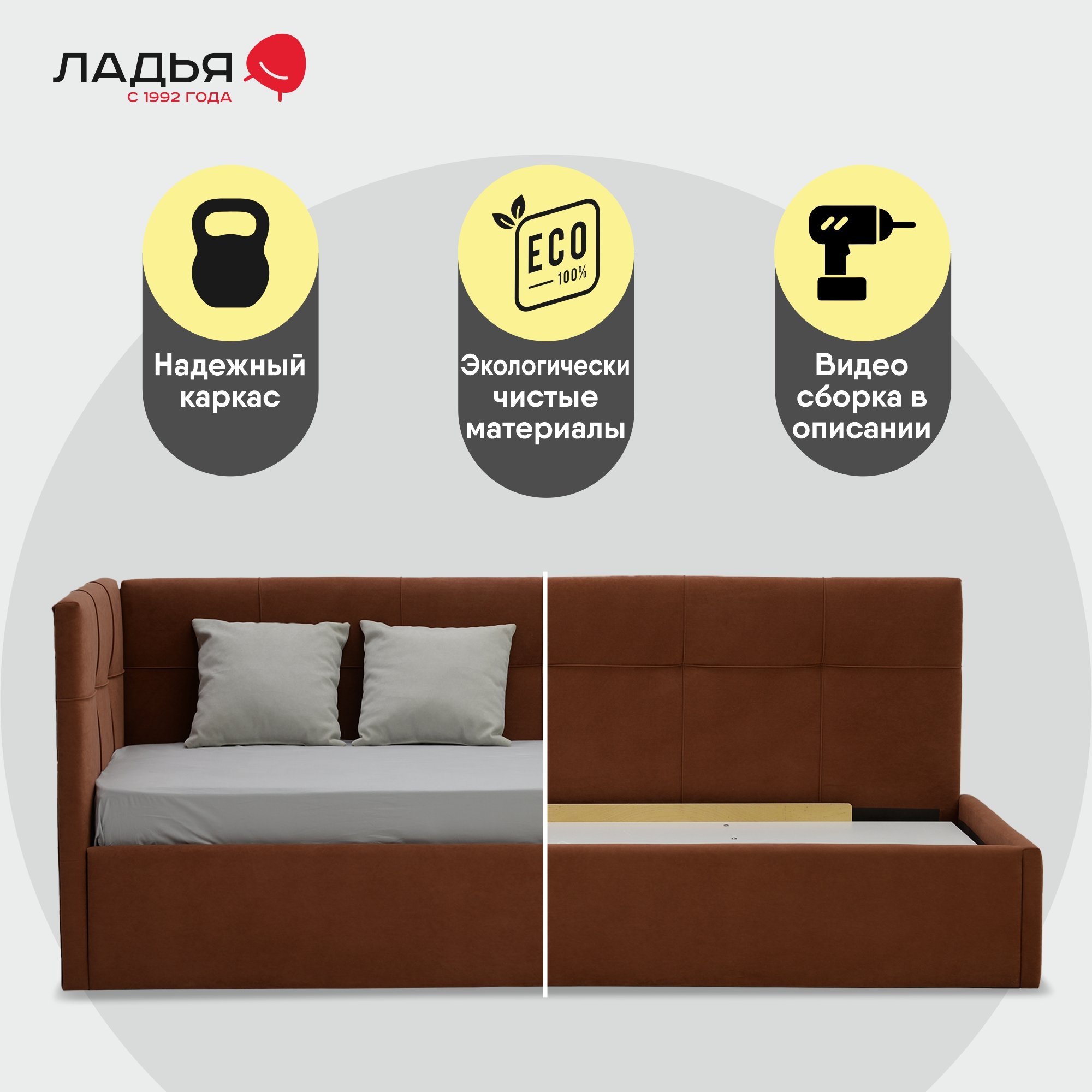 Более подробную информацию о доставке в регионы России, пожалуйста, уточняйте у операторов сall-центра по телефону 8 800 500 30 62 или напишите нам на электронный адрес shop@ladya.ruУважаемые покупатели! Обращаем Ваше ВНИМАНИЕ на то, что Мебельная фабрика Ладья ответственна за сохранность и целостность груза до момента передачи его в транспортную компанию. Убедительная просьба максимально внимательно отнестись к приёмке товара от транспортной компании. Если Вы обнаружили какие-либо повреждения принимаемого Вами товара, пожалуйста, зафиксируйте их в письменном акте или заявлении на месте. После обнаружения недостатков вне офиса ТК Ваши претензии рассматриваться не будут.