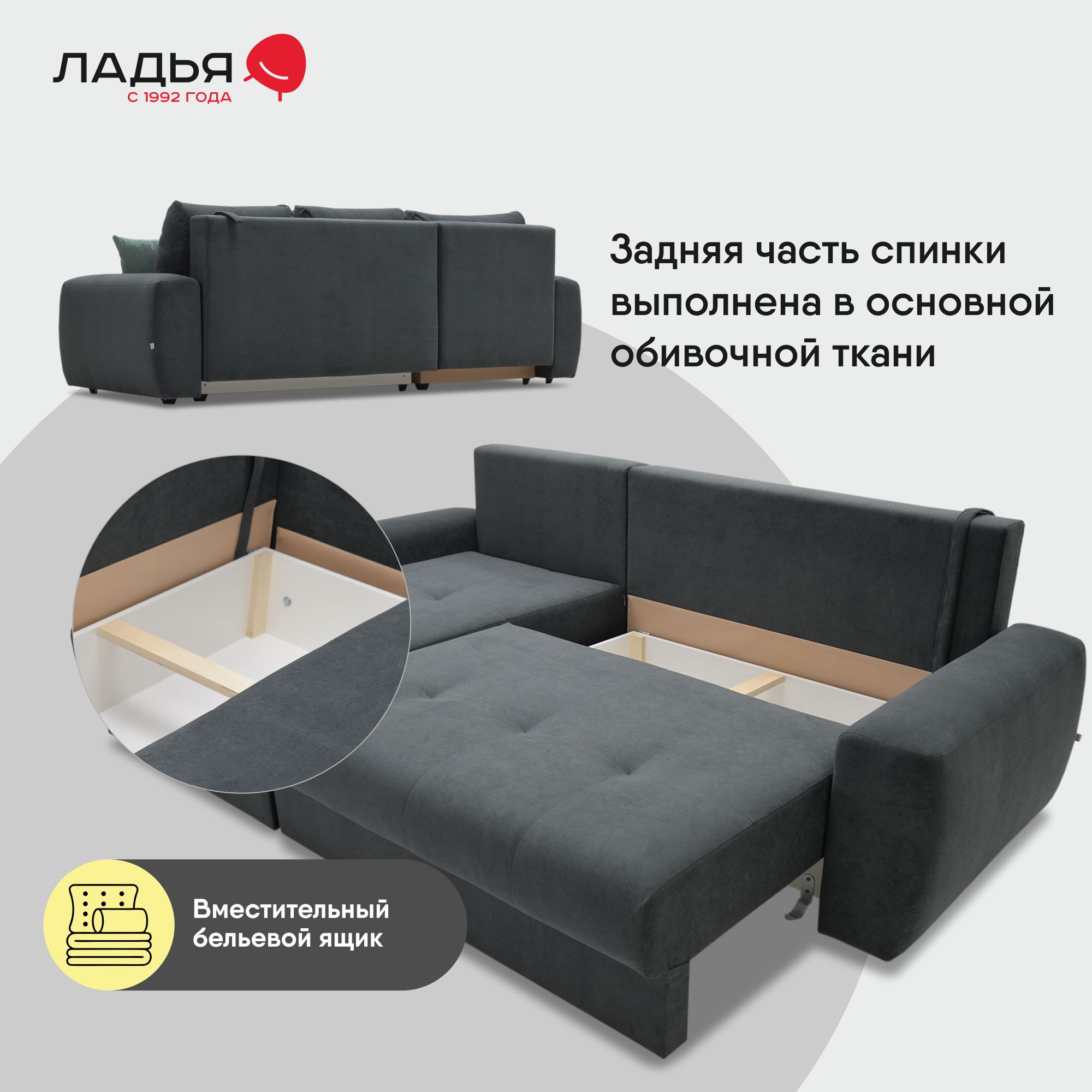 - Надёжный каркас с использованием древесины хвойных пород обеспечивает долговечность дивана.