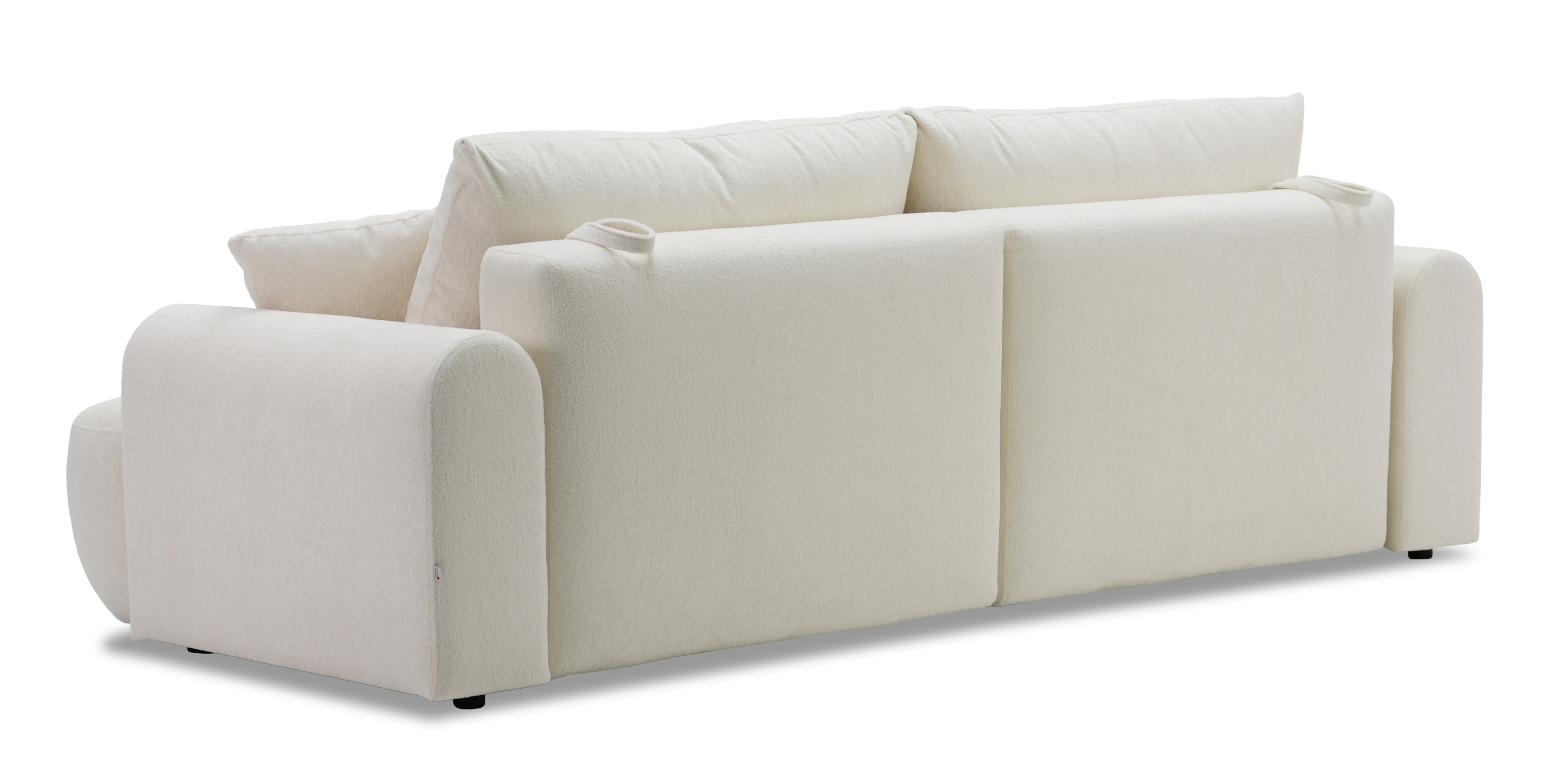 Во-первых, он имеет особенный дизайн – эффект раздутости, округлые формы даже у подлокотников. Так он кажется больше, внушительней и солиднее. Во-вторых, ткань обивки с мелким ворсом очень приятна к телу. За счет этого во время ночного сна простынь с дивана не соскальзывает. В-третьих, в разобранном виде у дивана с боков появляются выемки, и они удобны, когда встаёшь можно ставить туда ноги и тапочки. Такой мини-уголок получается. У этого дивана много плюсов, даже на первый взгляд неочевидных, не говоря уже о качестве материалов и изготовления, прочности каркаса и надежности механизмов. Очень советую всем!