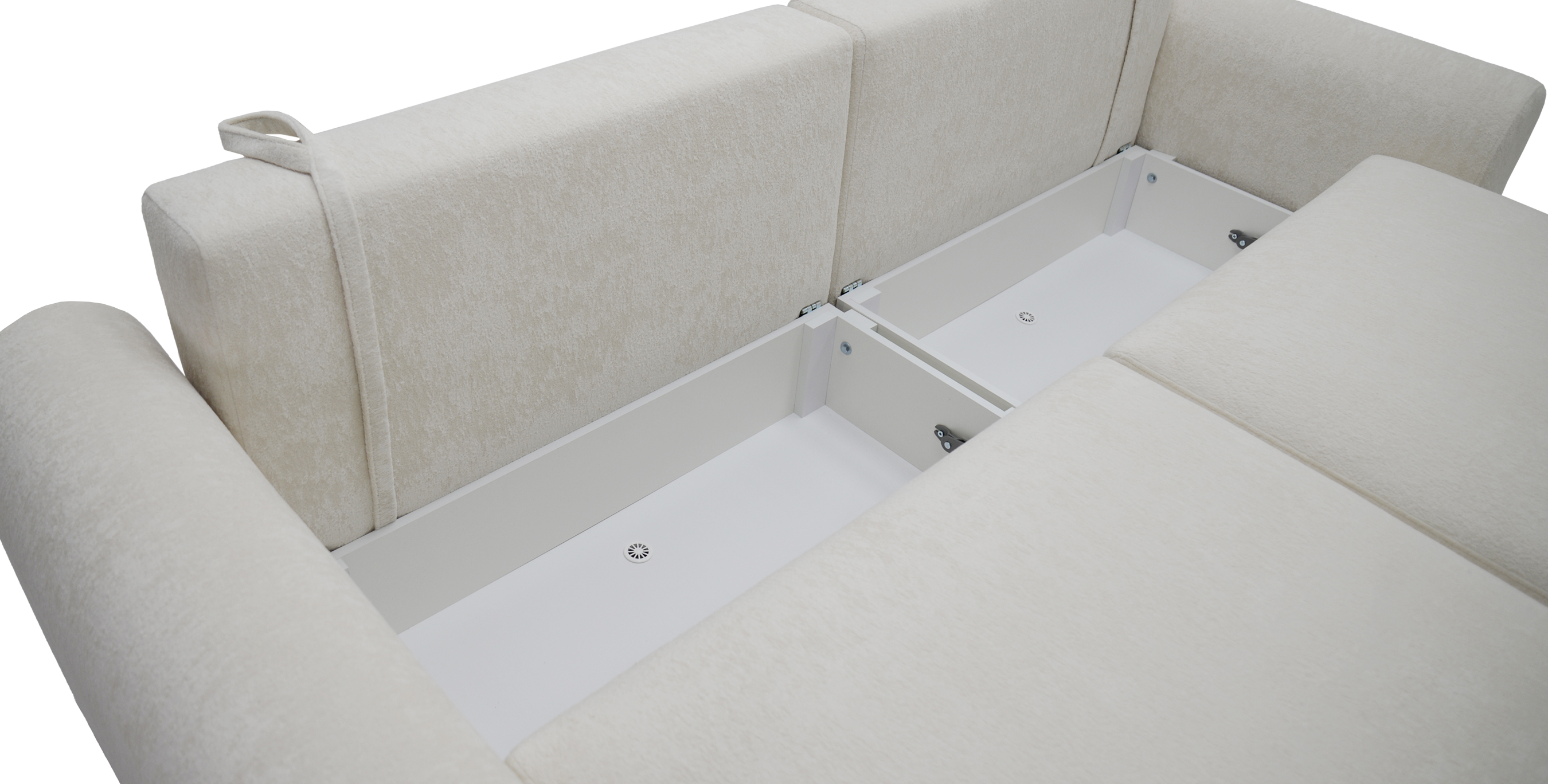 Под сиденьем предусмотрены вместительные ящики для хранения постельных принадлежностей и других важных вещей.