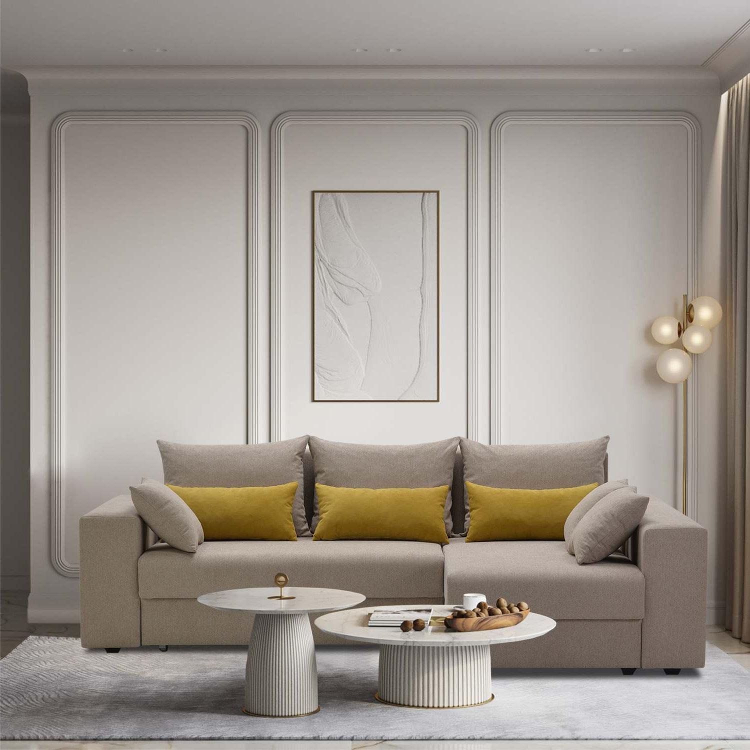 - Большое количество приспинных и декоративных подушек обеспечивает комфортный отдых, а различные их комбинации позволяют ежедневно менять внешний вид дивана.