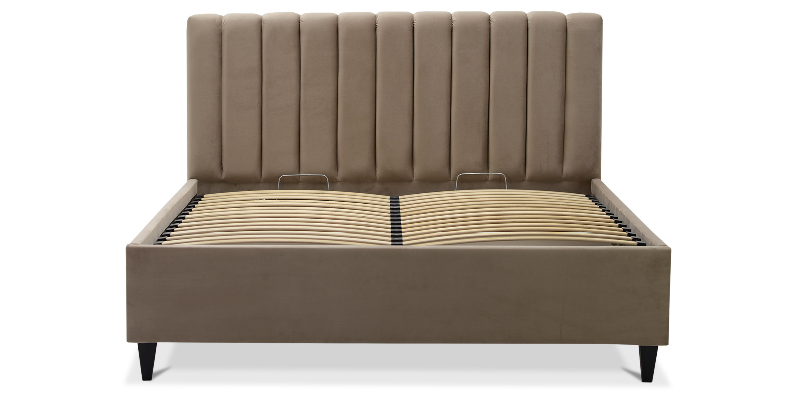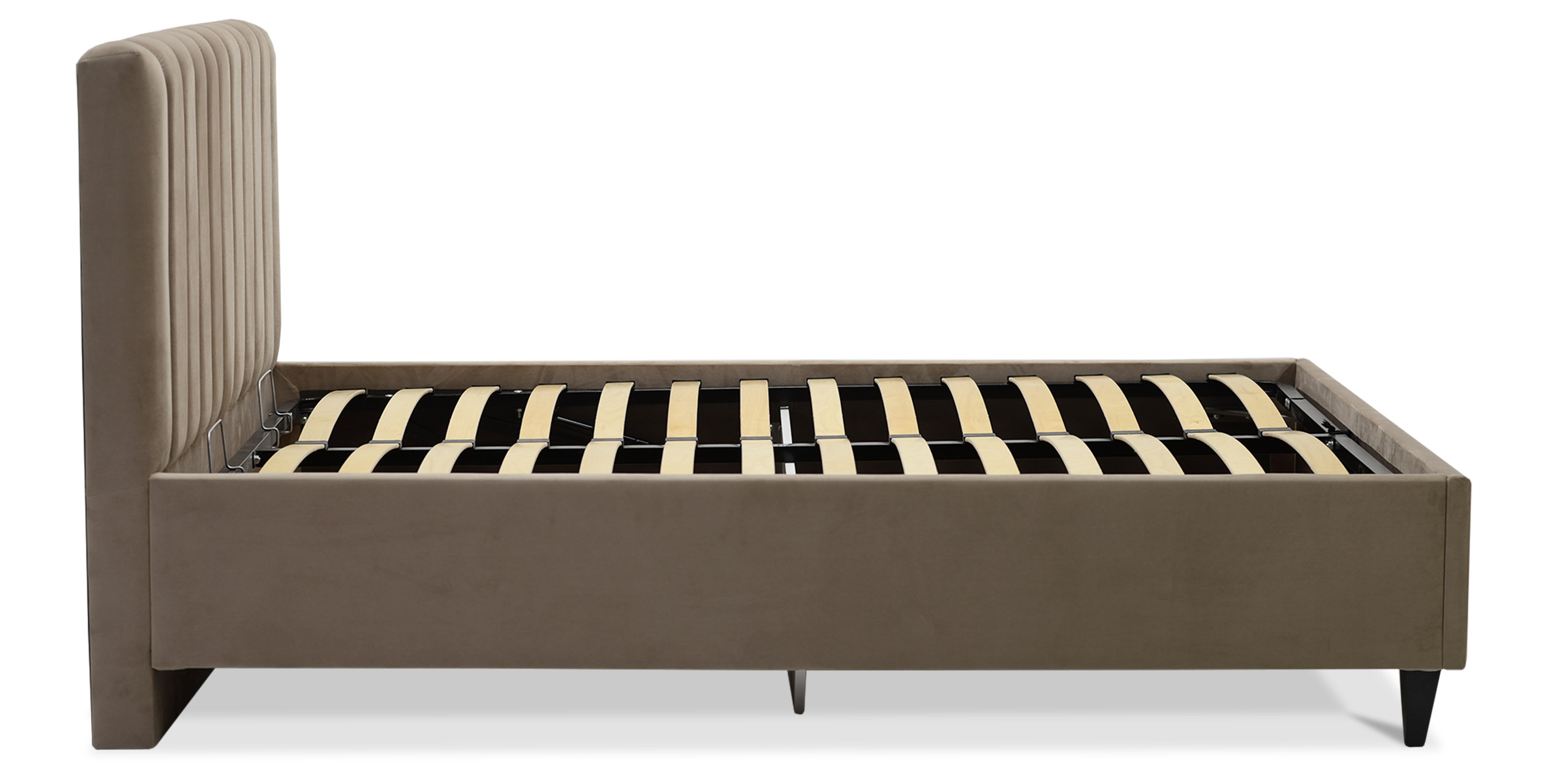 Каркас кровати надежен и долговечен, выполнен из бруса дерева. Кровать оснащена подъемным механизмом, благодаря которому осуществляется доступ к вместительному ящику для белья. Ортопедическое основание обладает необходимой упругостью, которая позволяет прогибаться в зависимости от приложенной нагрузки, тем самым гармонично дополняя ортопедические свойства матраса. Решетчатая структура основания не мешает воздуху циркулировать, что наилучшим образом сказывается на гигиенических свойствах матраса, ведь в нем не будет скапливаться влага, пыль и запахи.