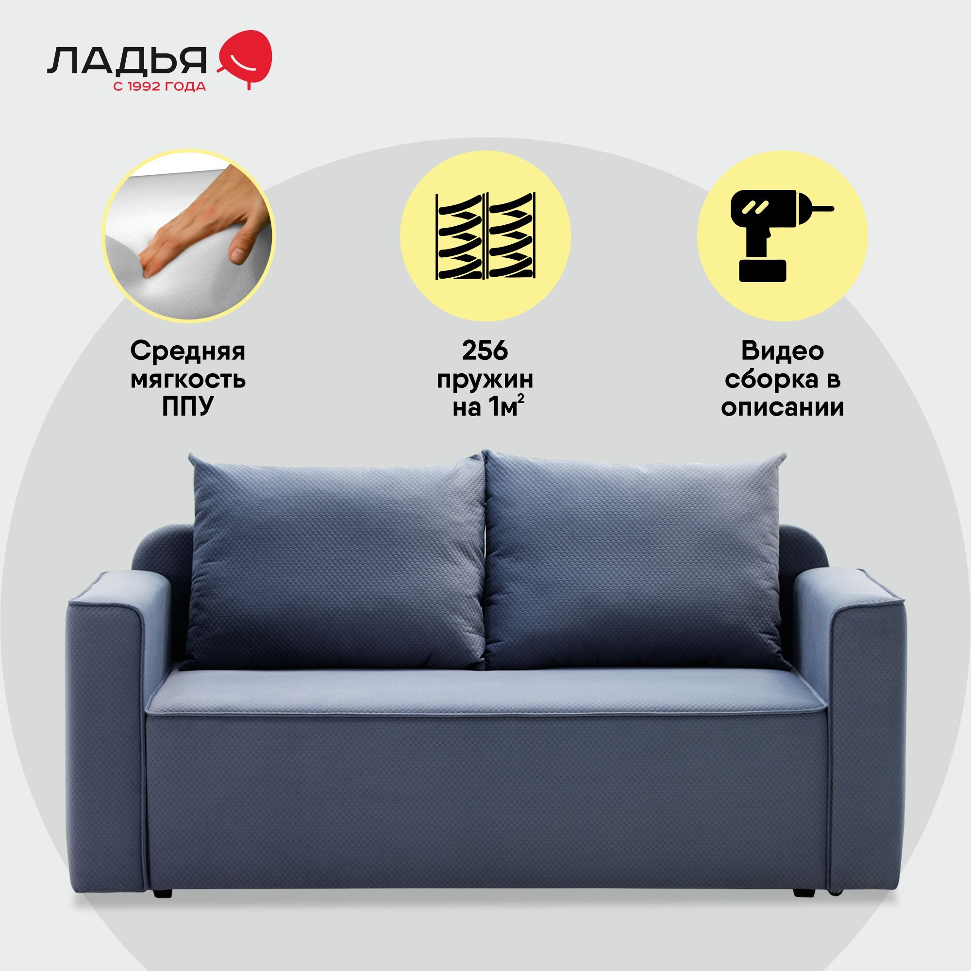 Сиденье сформировано с применением независимого пружинного блока и высокоэластичного пенополиуретана. Наполнитель декоративных подушек – смесь синтепуха и крошки ППУ.