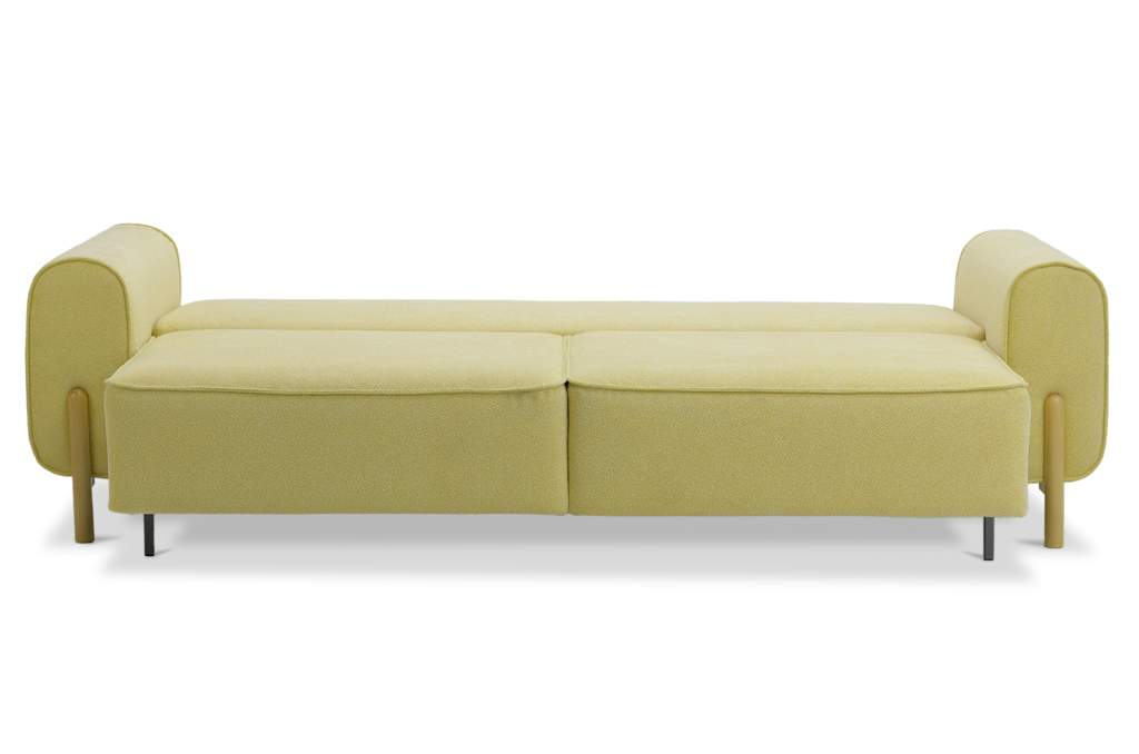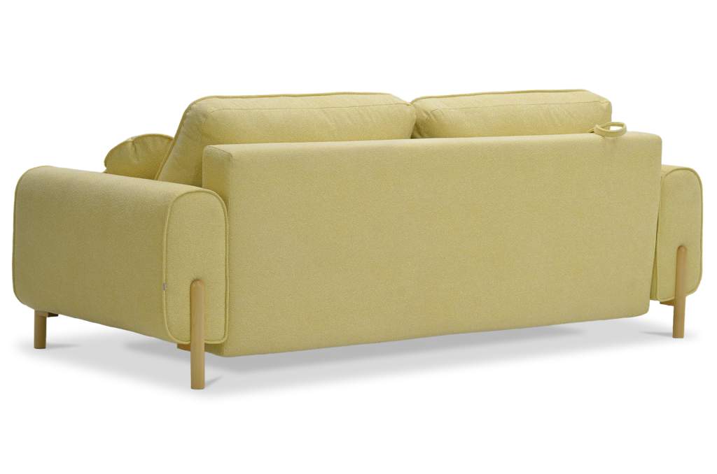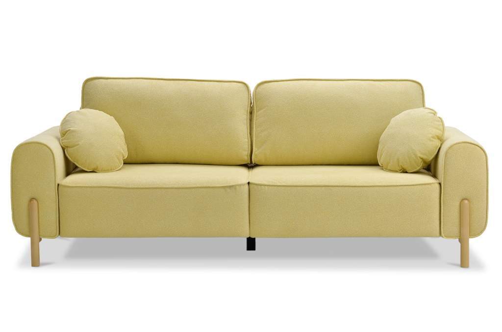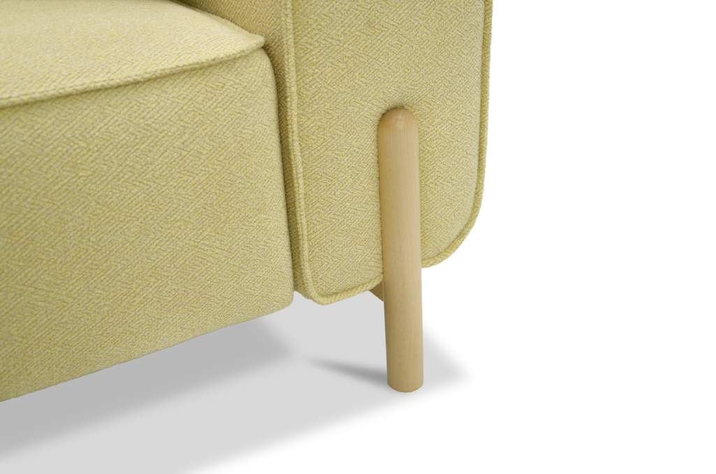 Диван декорирован опорами из натурального дерева (береза), высотой 15 см. Опоры визуально облегчают конструкцию дивана и открывают доступ к уборке пространства под ним.