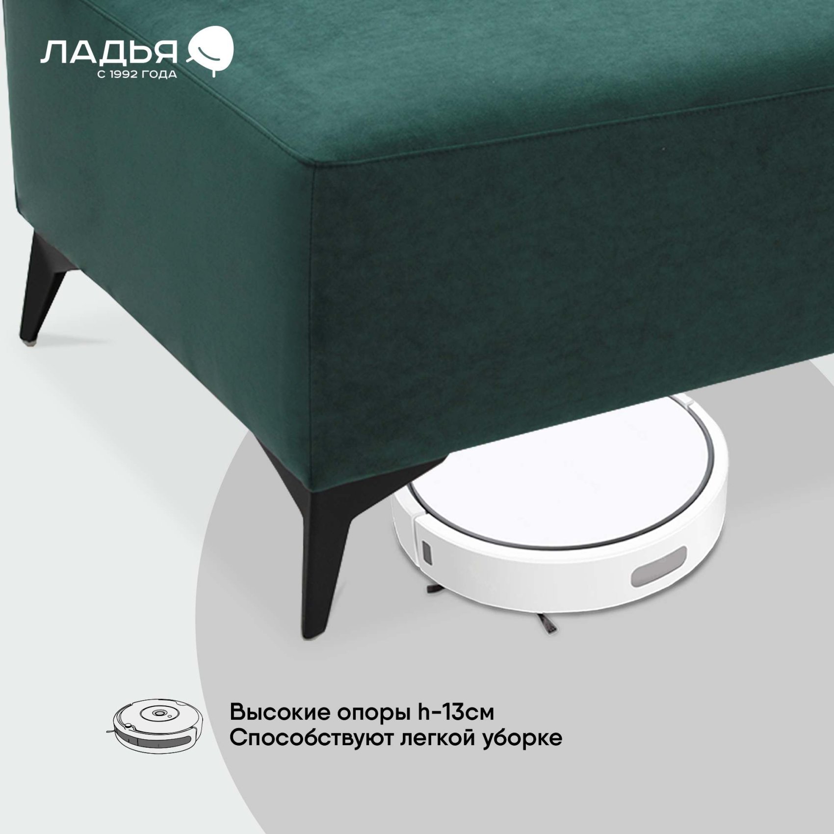 Металлические опоры придают дивану легкость и шарм в сочетании с комфортом. Благодаря высоким опорам Вы с легкостью сможете провести уборку.