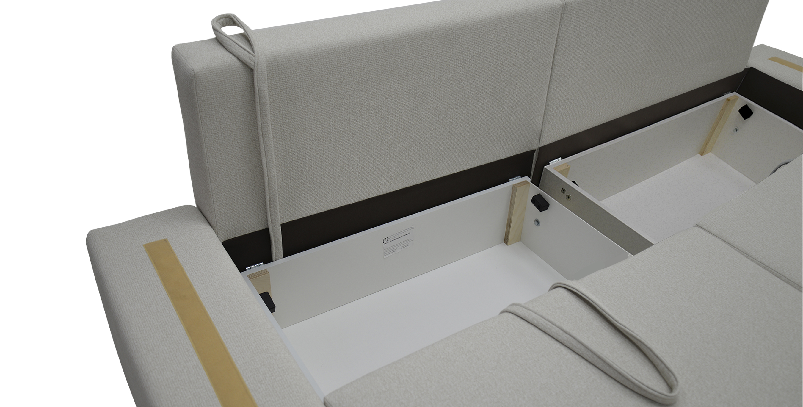 Диван оснащен двумя вместительными ящиками для хранения постельных принадлежностей.