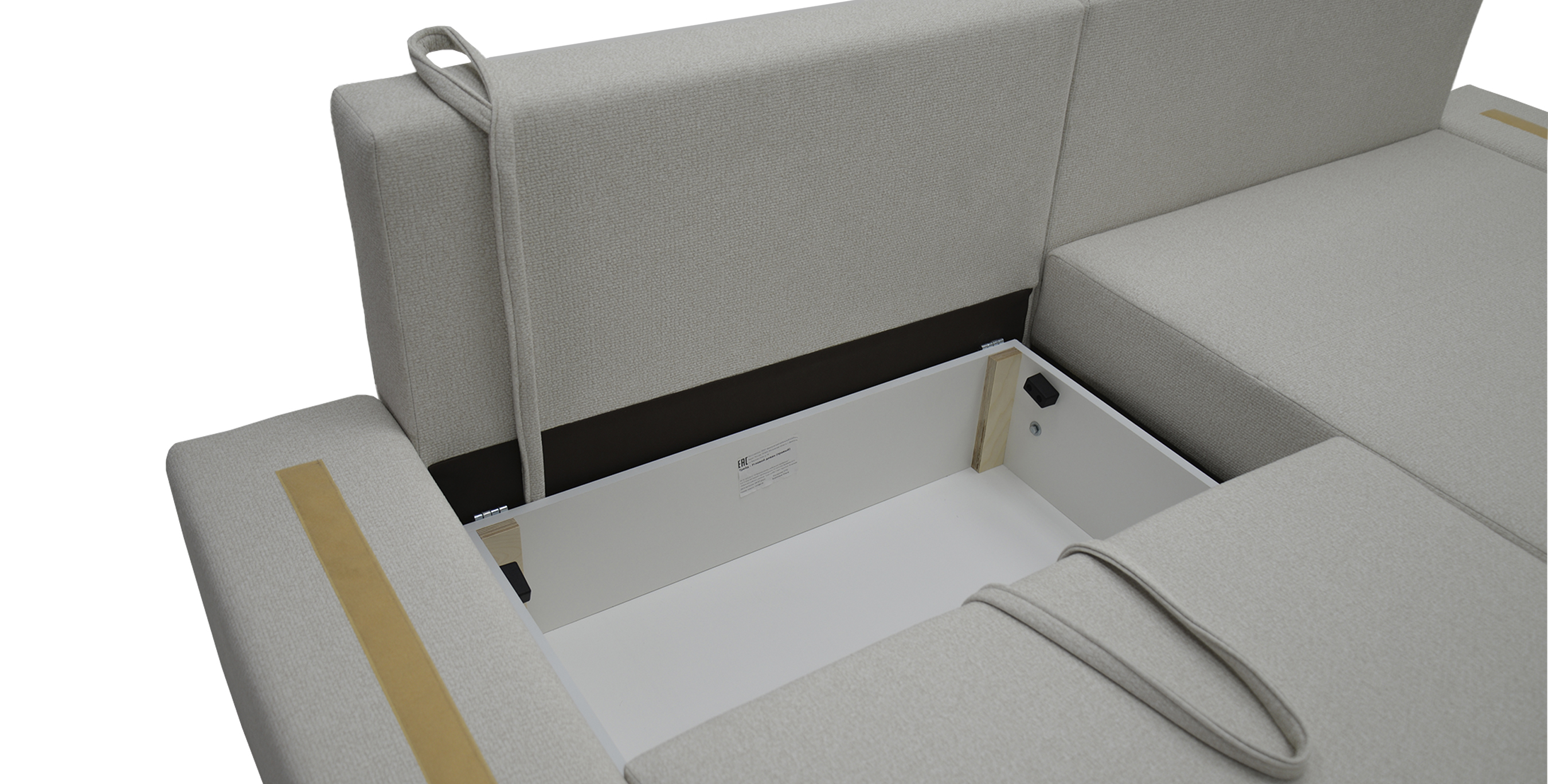 Диван оснащен вместительным ящиком для хранения постельных принадлежностей.